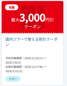 JTB等ツアー向けの割引クーポンを発行していることもあります。
